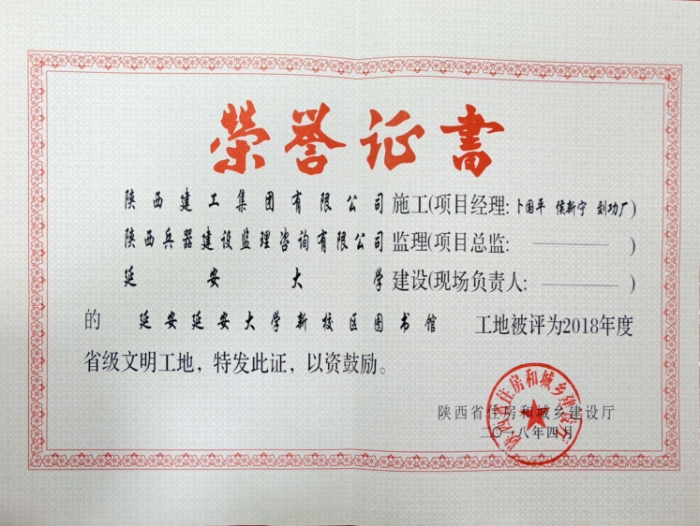 2017年度延安市建設(shè)工程寶塔杯獎