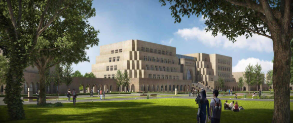 延安大學新校區(qū)圖書館為創(chuàng)魯班獎項目,位于陜西省延安市延安新區(qū)北區(qū)楊家?guī)X組團北片區(qū),北臨杜家溝路,東臨楊家?guī)X路。屬于延安大學新校區(qū)配套建筑基礎(chǔ)設(shè)施,建筑單體圖書館總建筑面積49883.79 m2,地下1層地上6層。